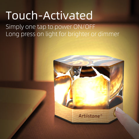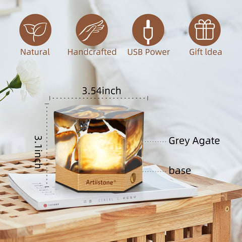 - 💝Crystal stone lamp:It has a wood base,the woode base dia is about 2.95inches,height is about 1.39inches;the total night light height is about 2.76inches.Each table light maybe slightly different in color,size and net weight.